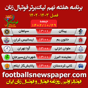 برنامه هفته نهم لیگ برتر فوتبال زنان ایران