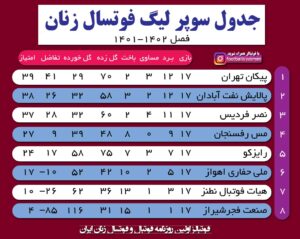 جدول لیگبرتر فوتسال