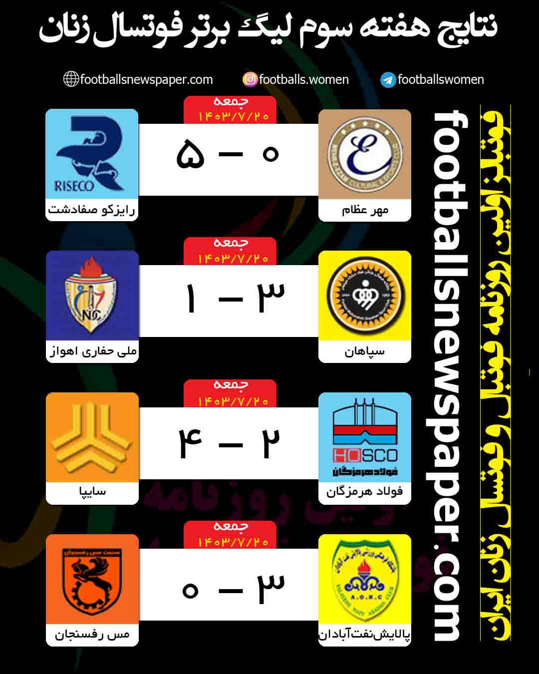 هفته سوم لیگ برتر فوتسال زنان+جدول ||