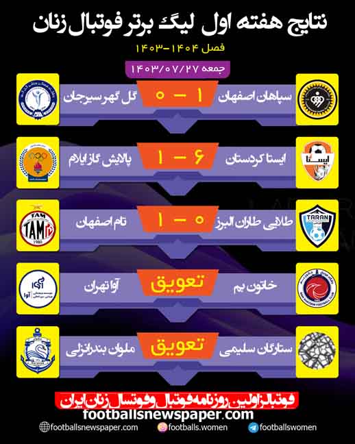 هفته اول لیگ برتر فوتبال زنان+جدول