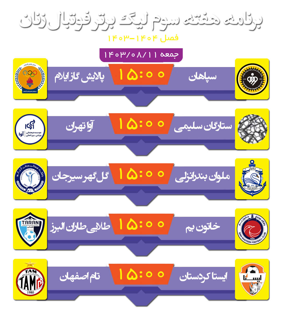 هر 5 تقابل هفته سوم لیگ برتر فوتبال زنان فردا (جمعه) پیگیری میشود.