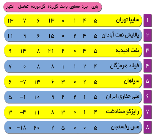 جدول لیگبرتر فوتسال زنان در پایان هفته پنجم