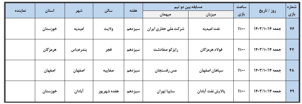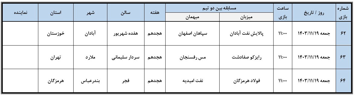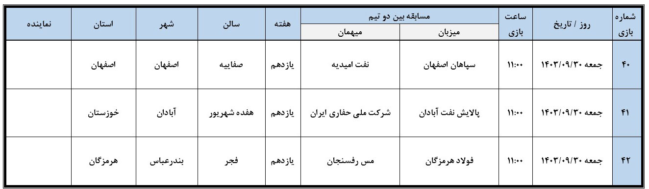 برنامه دور برگشت لیگ برتر فوتسال زنان