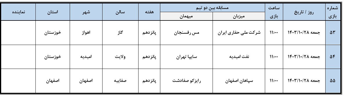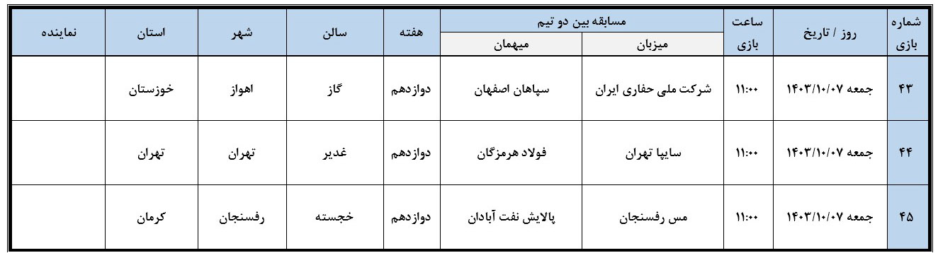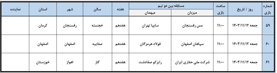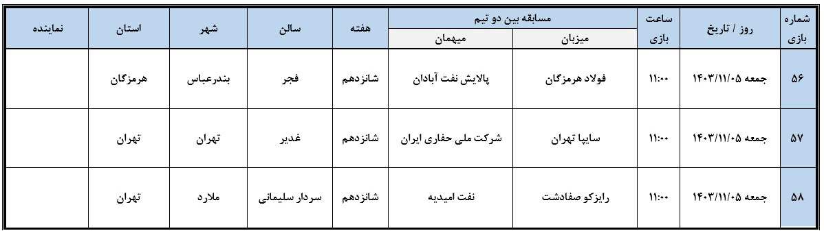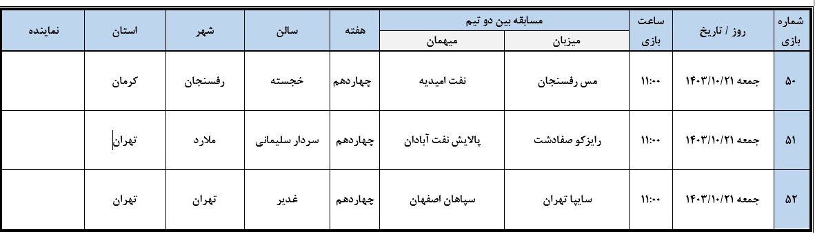 برنامه دور برگشت لیگ برتر فوتسال زنان ||