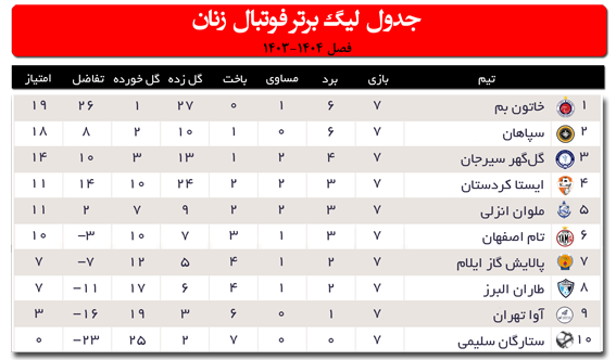 هفته هفتم لیگ برتر فوتبال زنان+جدول