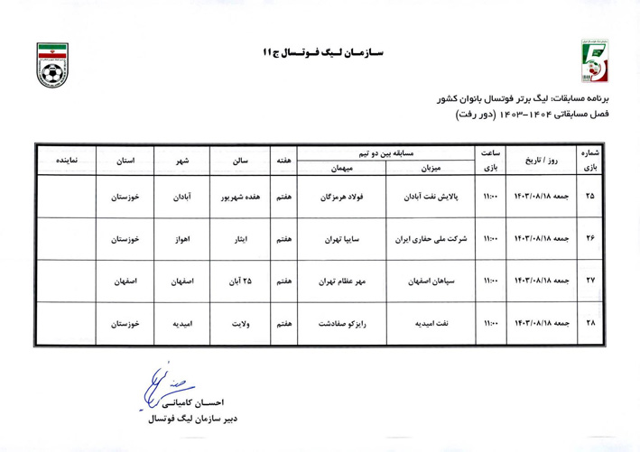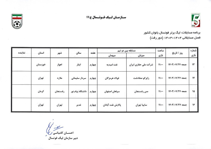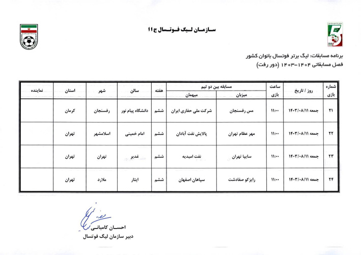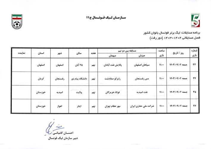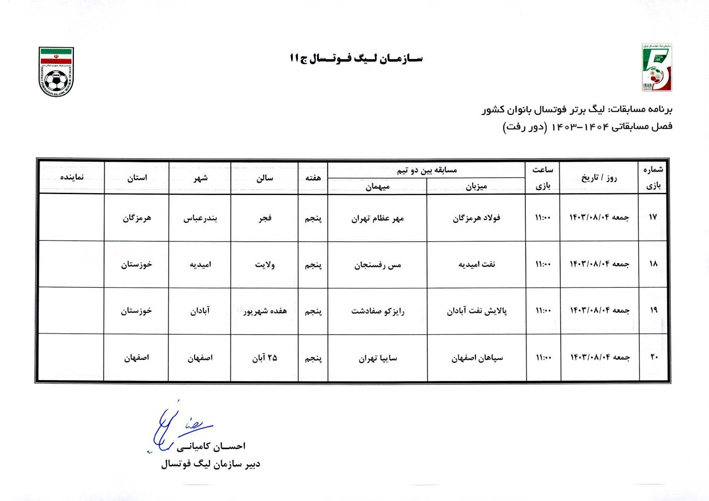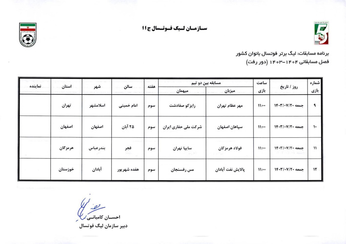 برنامه دور رفت لیگ برتر فوتسال زنان