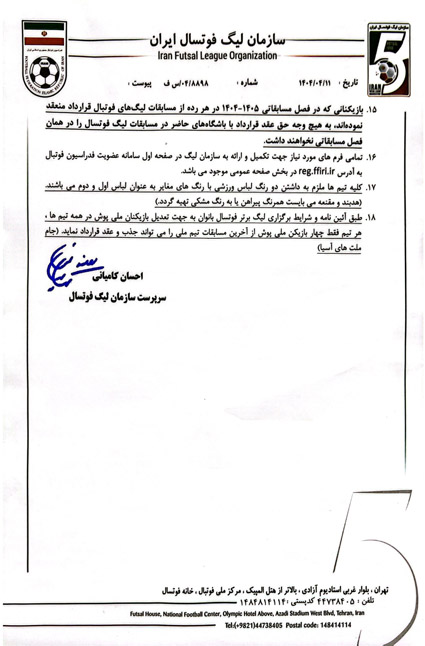 دستورالعمل برگزاری مسابقات لیگ برتر فوتسال زنان |