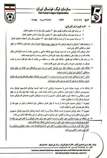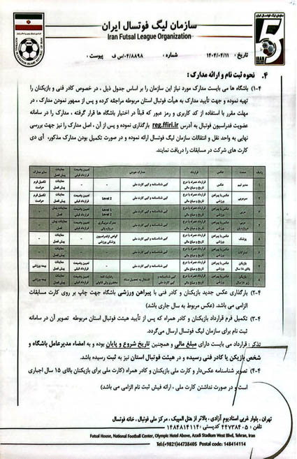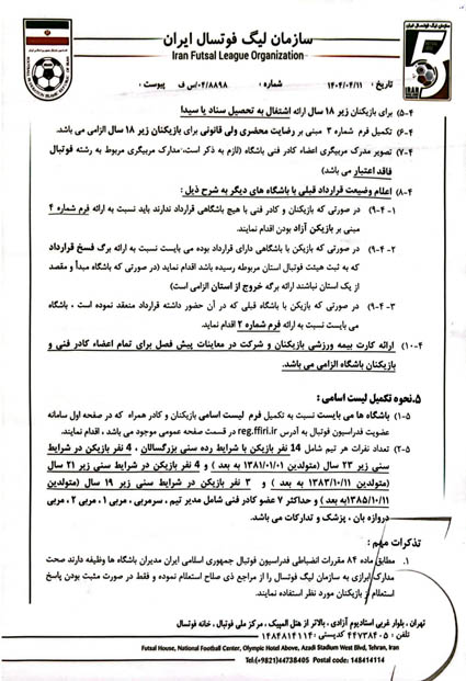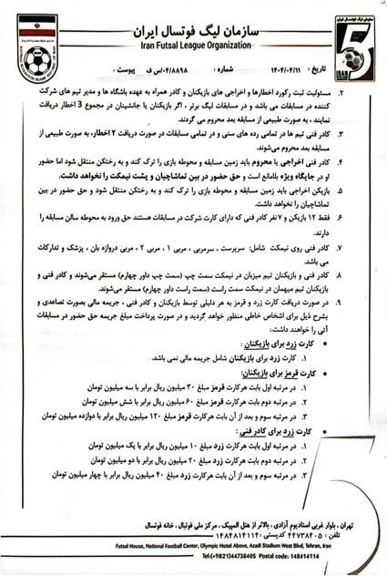 دستورالعمل برگزاری مسابقات لیگ برتر فوتسال زنان |